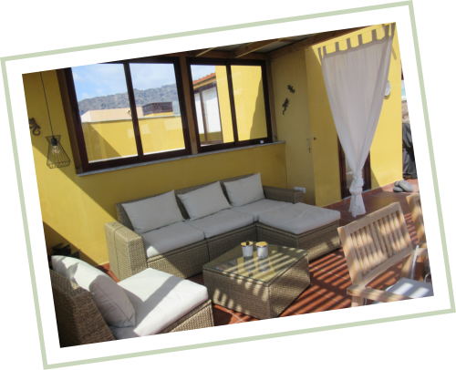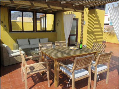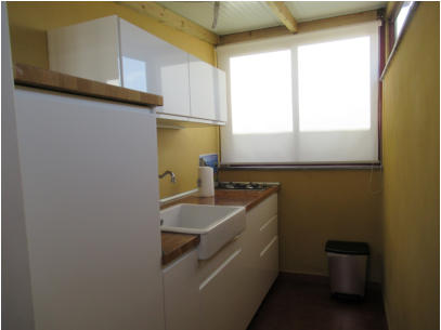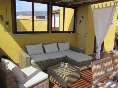 Die Schlafzimmer haben Rolladen. Vom Wohnbereich führt eine Treppe auf die Dachterrasse. Achtung: Durch die Treppe (siehe obige Photos) ist die Wohnung insbesondere für Kleinkinder oder gehbehinderte Menschen nicht